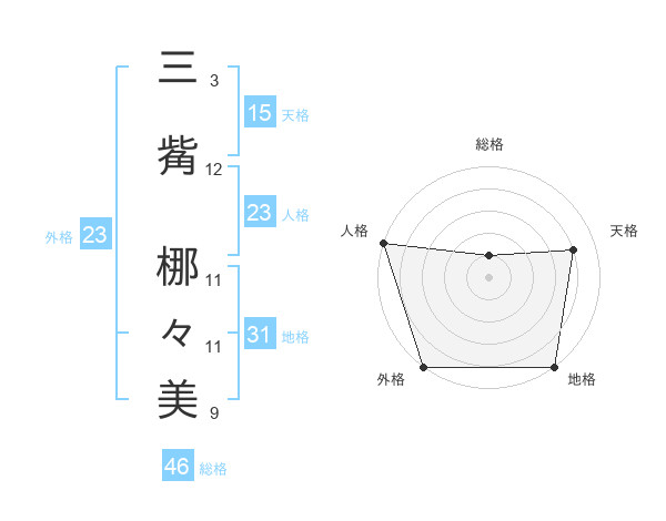 三觜 梛々美さんを姓名の画数から五運を鑑定