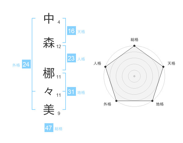 中森 梛々美さんを姓名の画数から五運を鑑定