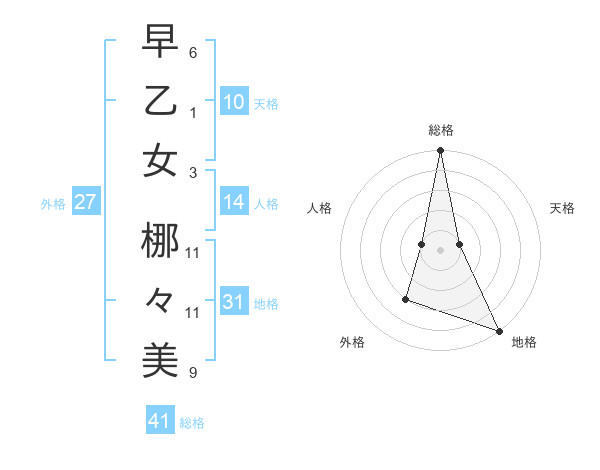 早乙女 梛々美さんを姓名の画数から五運を鑑定