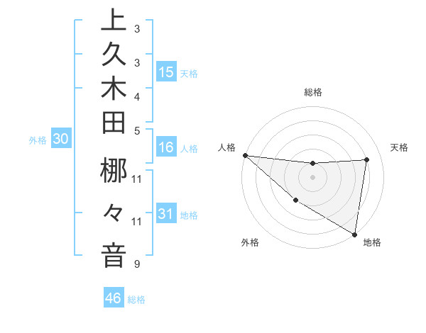 上久木田 梛々音さんを姓名の画数から五運を鑑定