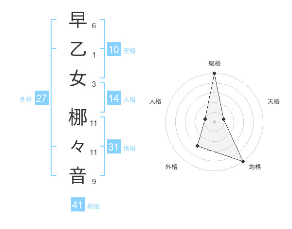 早乙女 梛々音さんの総格は41画の5点