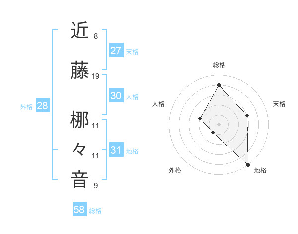 近藤 梛々音さんを姓名の画数から五運を鑑定