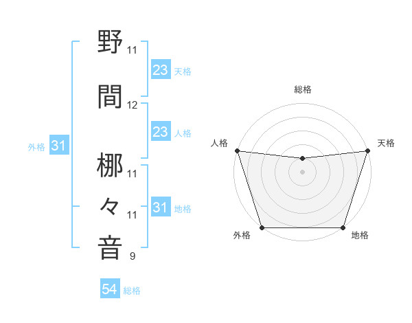 野間 梛々音さんを姓名の画数から五運を鑑定