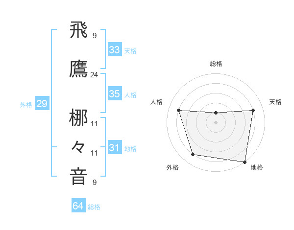飛鷹 梛々音さんの天格は33画の4点!