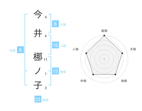 今井 梛ノ子さんを姓名の画数から五運を鑑定