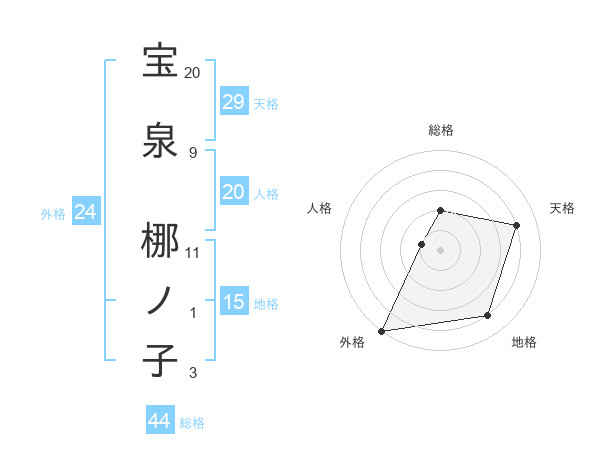 宝泉 梛ノ子さんを姓名の画数から五運を鑑定