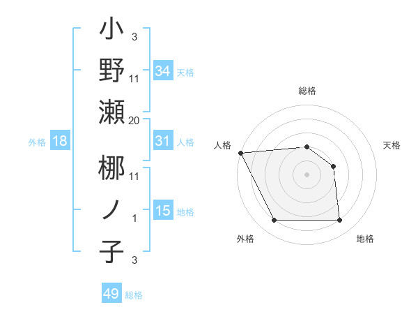 小野瀬 梛ノ子さんの総格は49画の2点!