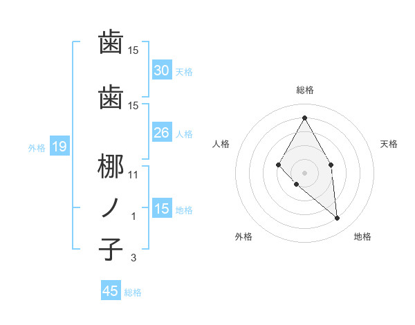 歯歯 梛ノ子さんを姓名の画数から五運を鑑定