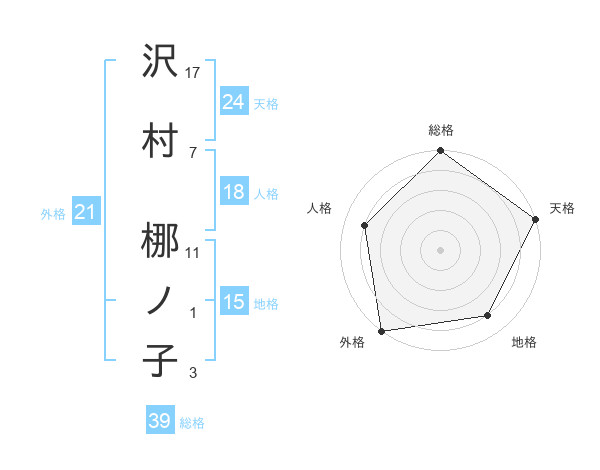 沢村 梛ノ子さんを姓名の画数から五運を鑑定