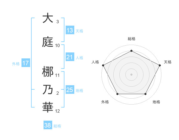 大庭 梛乃華さんを姓名の画数から五運を鑑定