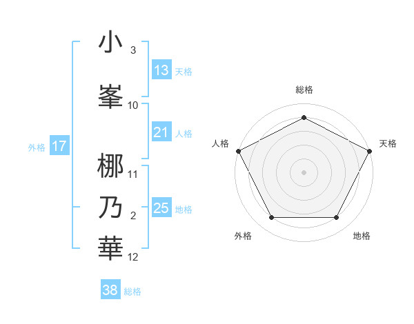 小峯 梛乃華さんの総格は38画の4点!