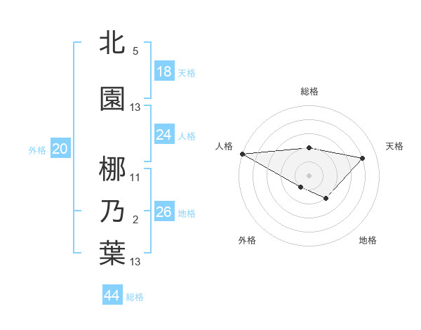 北園 梛乃葉さんを姓名の画数から五運を鑑定