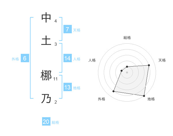 中土 梛乃さんを姓名の画数から五運を鑑定