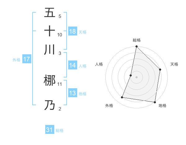 五十川 梛乃さんの総格は31画の5点!