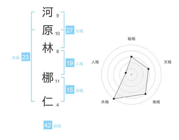 河原林 梛仁さんを姓名の画数から五運を鑑定