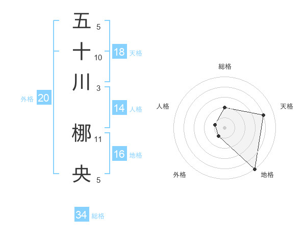 五十川 梛央さんを姓名の画数から五運を鑑定