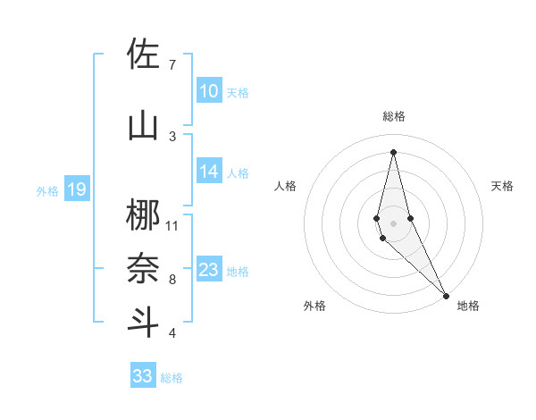 佐山 梛奈斗さんの総格は33画の4点!