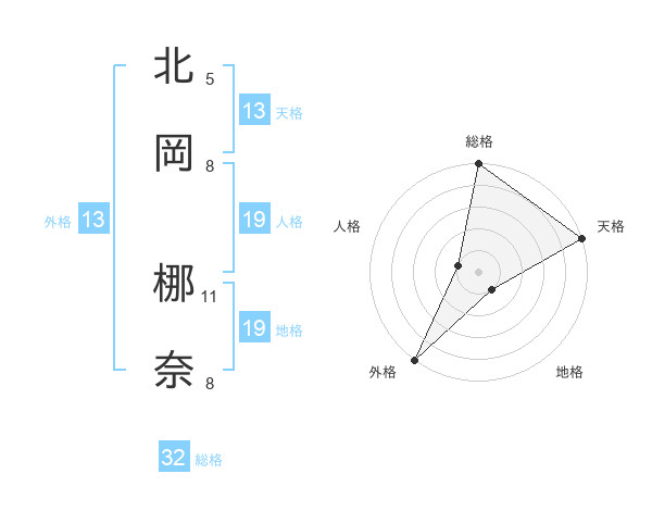 北岡 梛奈さんの外格は13画の5点!