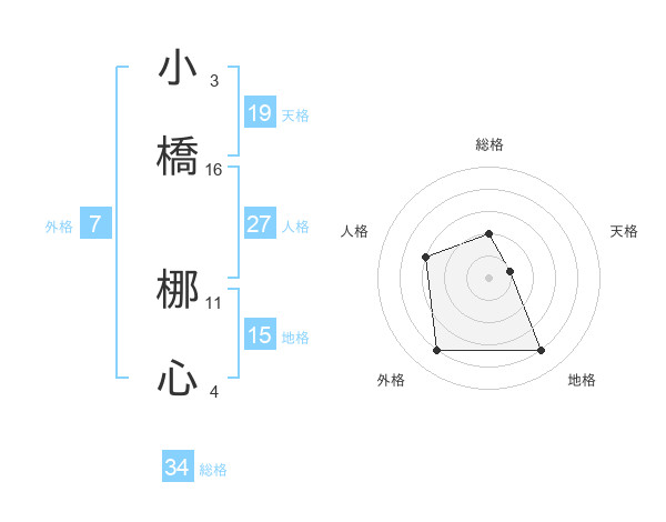 小橋 梛心さんを姓名の画数から五運を鑑定