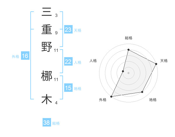 三重野 梛木さんを姓名の画数から五運を鑑定