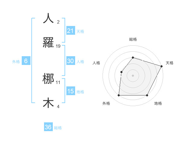 人羅 梛木さんの総格は36画の3点!