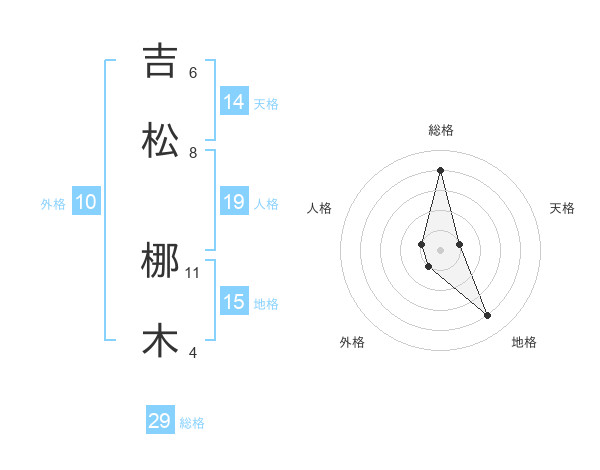 吉松 梛木さんの総格は29画の4点!