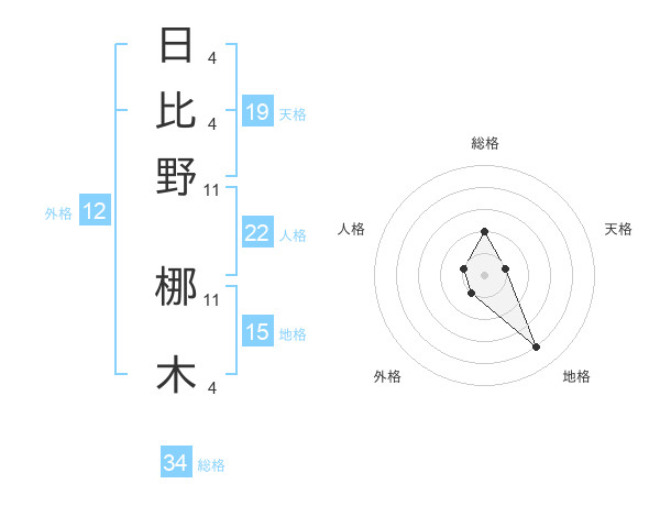 日比野 梛木さんを姓名の画数から五運を鑑定