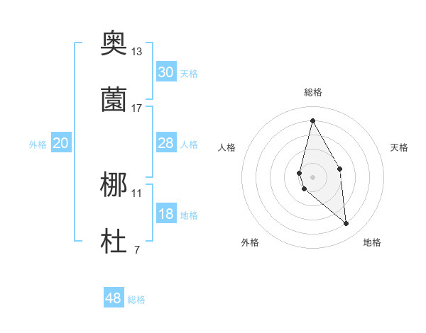 奥薗 梛杜さんの天格は30画の2点!