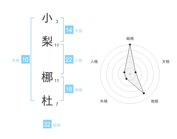 小梨 梛杜さんを姓名の画数から五運を鑑定