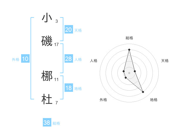 小磯 梛杜さんの総格は38画の4点!
