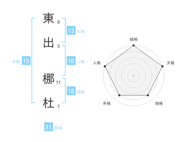 東出 梛杜さんを姓名の画数から五運を鑑定