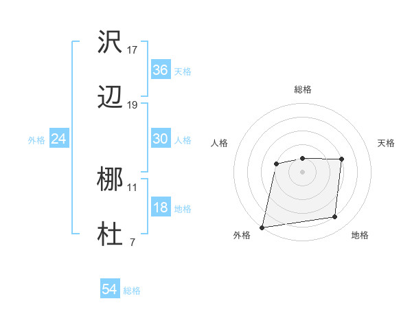 沢辺 梛杜さんの外格は24画の5点!