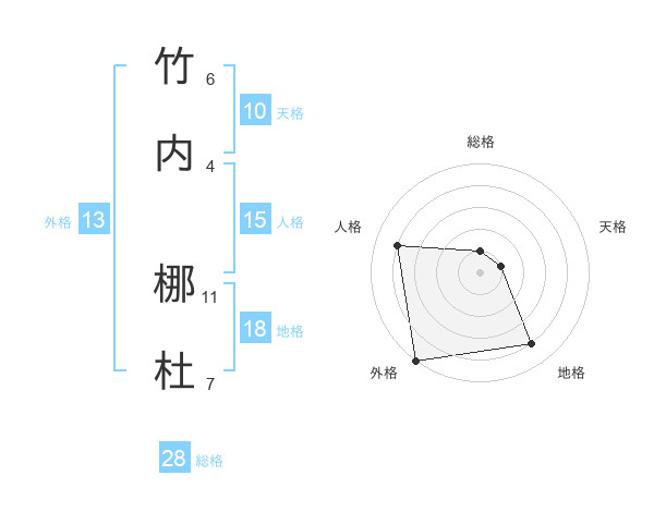 竹内 梛杜さんの外格は13画の5点!