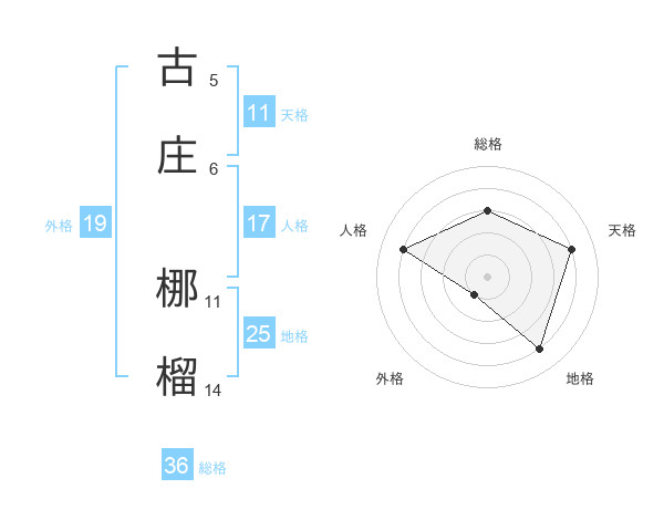 古庄 梛榴さんを姓名の画数から五運を鑑定
