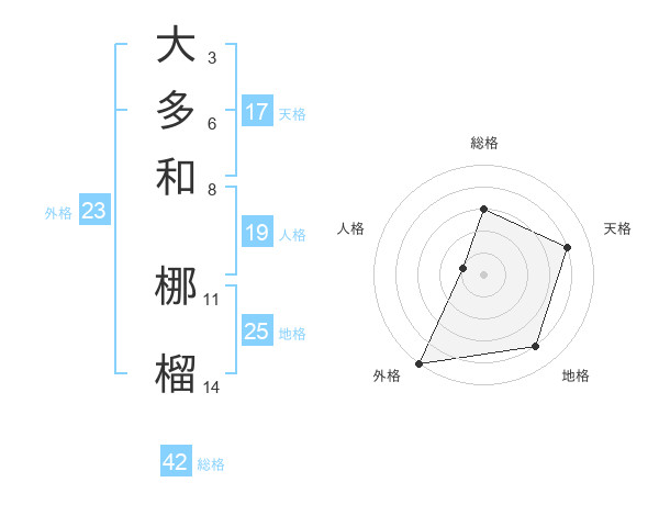 大多和 梛榴さんを姓名の画数から五運を鑑定