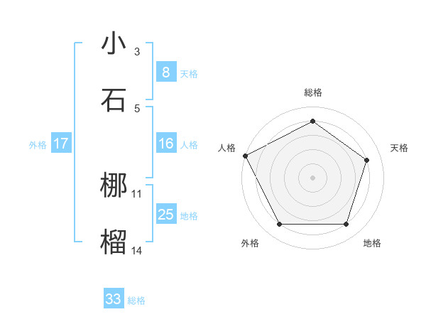 小石 梛榴さんを姓名の画数から五運を鑑定