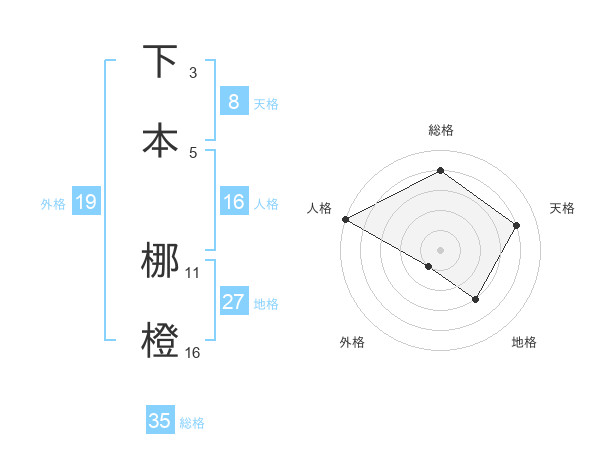 下本 梛橙さんの総格は35画の4点!