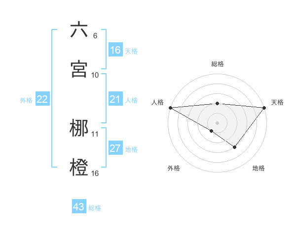 六宮 梛橙さんを姓名の画数から五運を鑑定