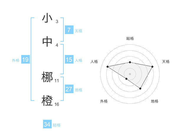 小中 梛橙さんの総格は34画の2点!