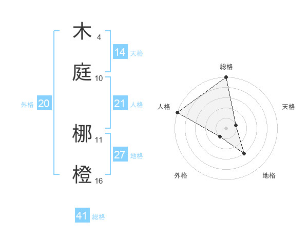 木庭 梛橙さんの総格は41画の5点!