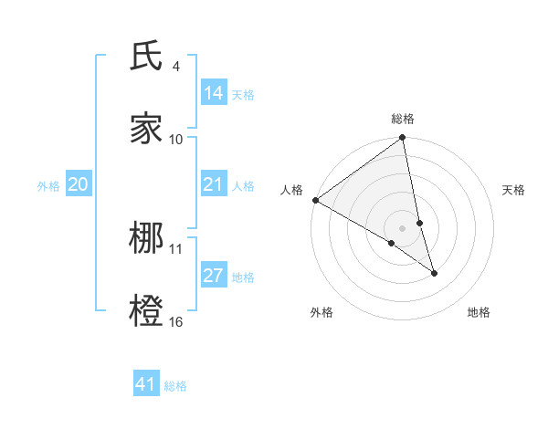 氏家 梛橙さんの総格は41画の5点!