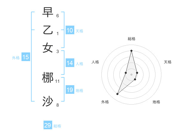早乙女 梛沙さんの総格は29画の4点