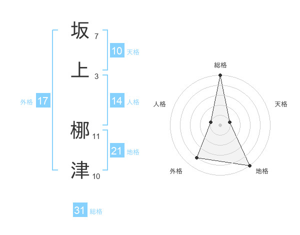 坂上 梛津さんを姓名の画数から五運を鑑定