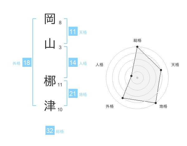 岡山 梛津さんを姓名の画数から五運を鑑定