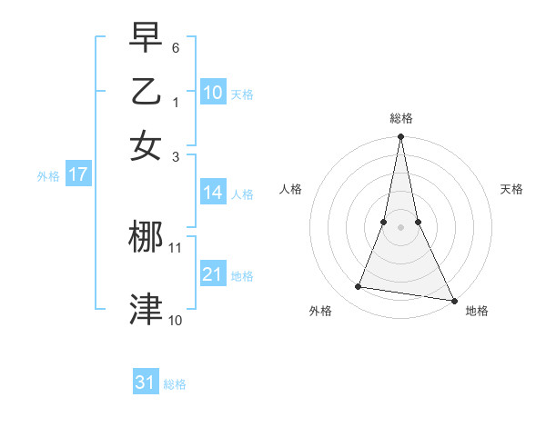早乙女 梛津さんを姓名の画数から五運を鑑定