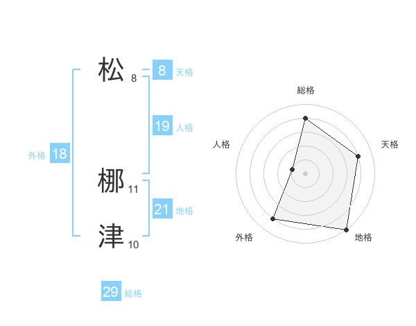 松 梛津さんの総格は29画の4点!