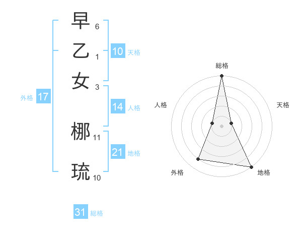 早乙女 梛琉さんを姓名の画数から五運を鑑定