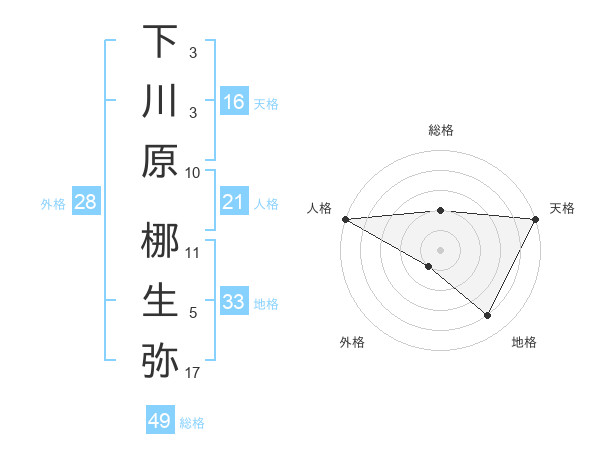 下川原 梛生弥さんを姓名の画数から五運を鑑定