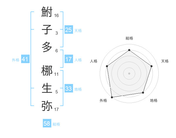 鮒子多 梛生弥さんを姓名の画数から五運を鑑定