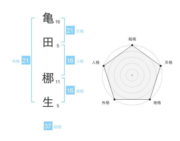 亀田 梛生さんの外格は21画の5点!